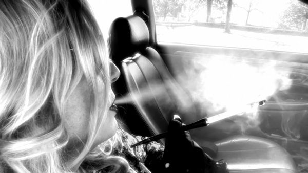 UP CLOSE BLONDIE CAR SMOKING HER VS120 GLOVES SUNGLASSES