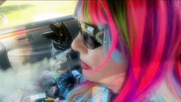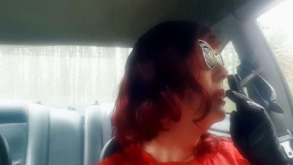 CAR SMOKING A STRONG VS100 MENTHOL W/ SEXY CIGARETTE HOLDER