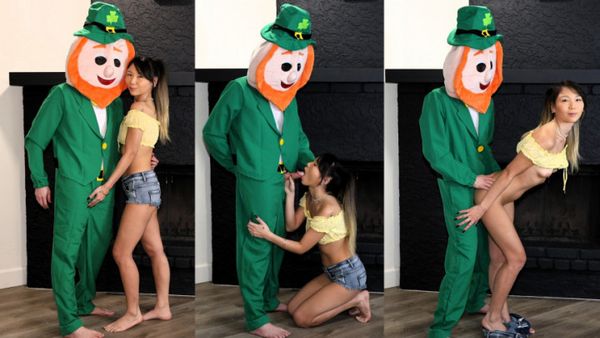 Asian Hottie Sucks and Fucks a Leprechaun