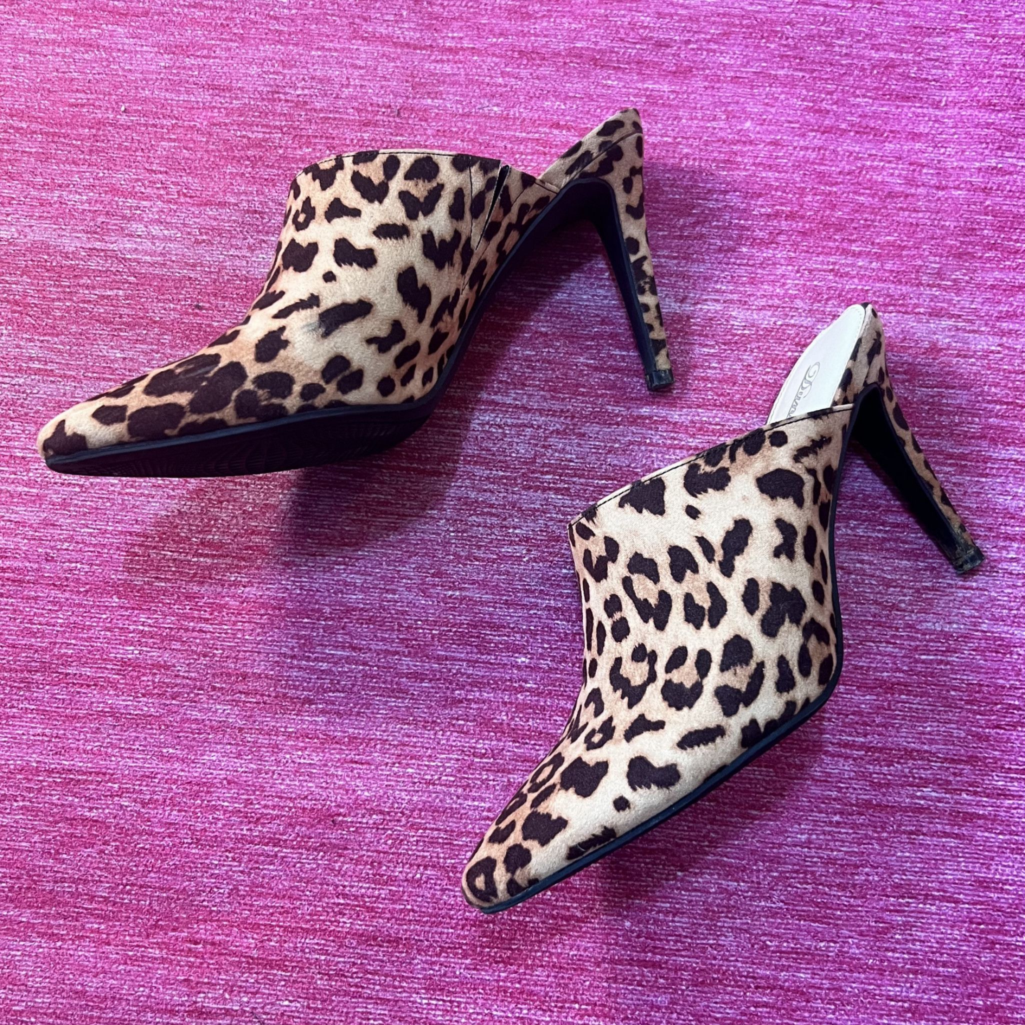 Leopard Print Stiletto Mules SIZE 8 - Select 'make dirty with pussy juice' if you would like Me to wear them for a few hours before sending. No, I will not be making them dirty with My pussy, just My feet, but MV only has this as an option to select.