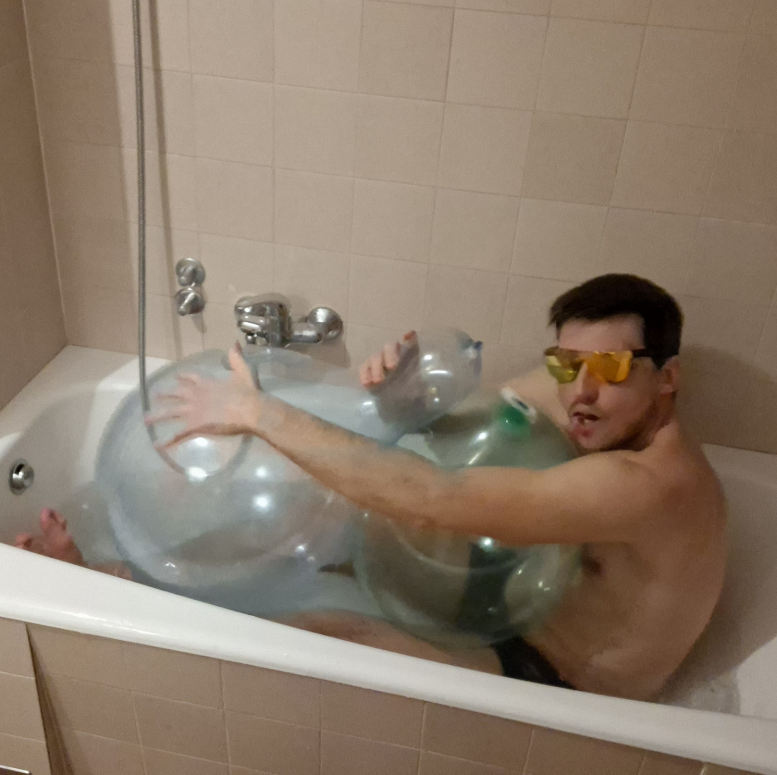 Pose with balloons