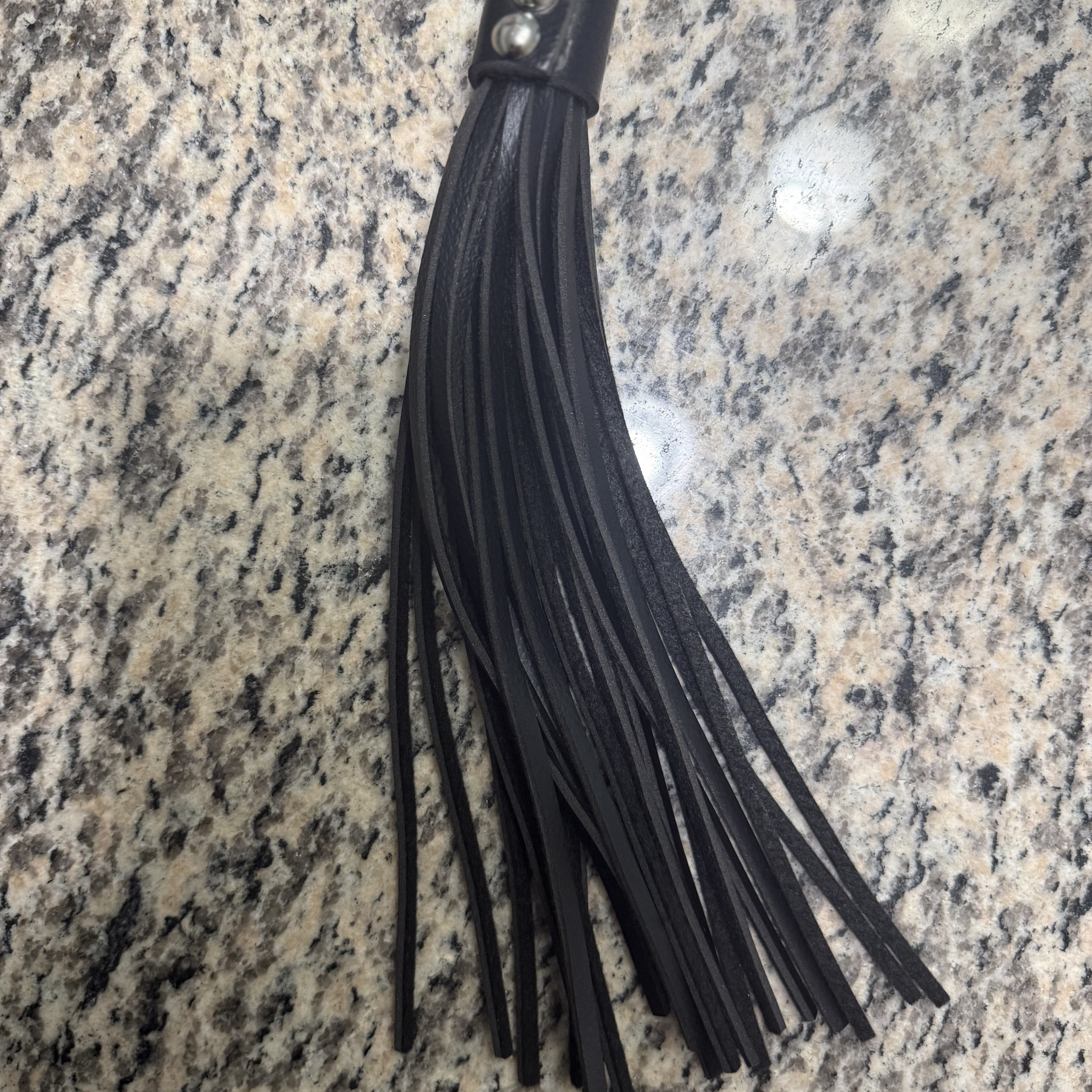 This sleek black leather flogger—multi-tail sting, beaded grip for perfect control, rubber loop handle—left delicious marks in our latest vid Thuddy impact, teasing buildup, pure power play. Snag it now from my ManyVids store & turn up the heat in your sessions!